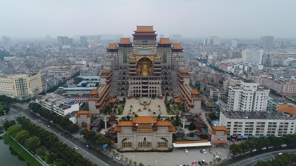 - 地理位置:廣西玉林市玉州區(qū)江濱路461號,國家AAAA級景區(qū),占地70畝,建筑面積14萬平方米,主樓21層高108米,被譽為“玉林版布達(dá)拉宮”,集雕塑藝術(shù)、民俗文化、珍寶展示于一體。