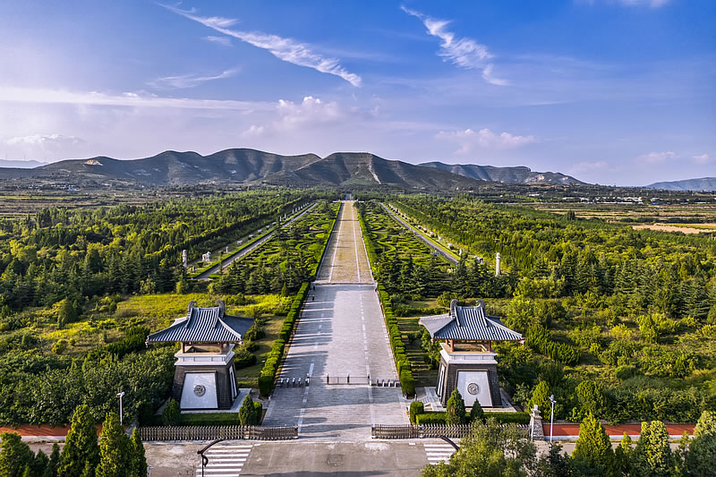 - 地理位置:陜西省渭南市蒲城縣西北豐山,唐睿宗李旦陵墓,全國重點文物保護單位、國家AAAA級景區(qū),以“石雕藝術(shù)寶庫”著稱,面積852萬平方米,神道寬110米、長625米,石刻群包括華表、翼馬、鴕鳥、翁仲等,氣勢恢宏。