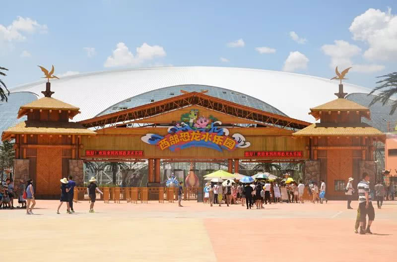西部恐龍水樂園位于蘭州新區(qū)鳳凰山路1555號(hào),總建設(shè)用地約2200畝,包含室內(nèi)外兩大水樂園區(qū)域。室內(nèi)水樂園采用28℃恒溫系統(tǒng)實(shí)現(xiàn)全年運(yùn)營(yíng),配備歡樂島、加勒比海灘等17項(xiàng)國(guó)際化游樂設(shè)施;室外區(qū)域設(shè)有造浪池、叢林旋渦等12組水上游樂設(shè)備。園區(qū)以恐龍為主題,布置仿真模型及恐龍化石展品,兼具科普教育與娛樂功能。