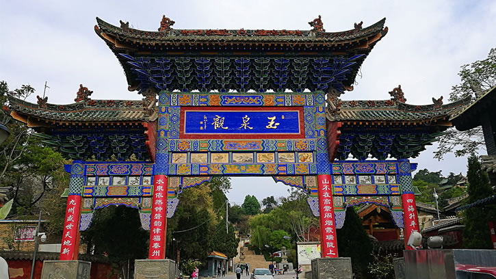 天水玉泉觀位于甘肅省天水市秦州區(qū)城北天靖山腳下,北迤青山,南俯州城。海拔高度1230米。因山上有一碧水瑩瑩、清甜透腦的玉泉和元代秦州教諭梁公弼建寺時吟有“山寺北郊,名山玉泉”之句而得名。俗稱城北寺,又名崇寧寺。玉泉觀占地面積九萬余平方米,現(xiàn)存建筑大多為明清時重建。觀緊依城垣,順山勢升高,隨山溝、崖壁、臺地而建。玉泉觀內(nèi)有秦州八景之一的“玉泉仙洞”,相傳為蘆、梁、馬三真人羽化埋葬之地。