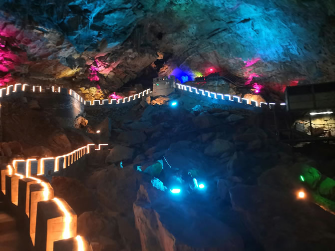 - 核心景觀:黃金溶洞(約2000米,鐘乳石千姿百態(tài),常年18℃清涼)、明代大理石長城(野長城段,山頂古炮臺(tái)遺址)。