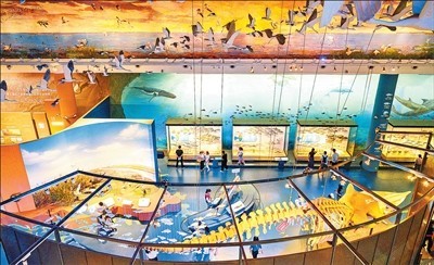 10月2日,游客來到位于江蘇鹽城的黃海濕地博物館參觀游覽。胡志超攝(影像中國)