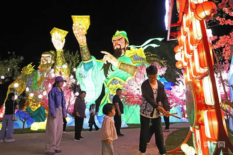 “快看,涿水女神在眨眼!”孩童驚呼引來(lái)眾人駐足。運(yùn)用動(dòng)態(tài)LED技術(shù),絹紗背后的女神眼眸流轉(zhuǎn),讓古老傳說(shuō)瞬間鮮活。12米的“桃園三結(jié)義”燈組搭配實(shí)景情景劇,讓“三國(guó)演義從涿州開(kāi)篇”的故事跳出書(shū)本。盧植、酈道元等先賢燈廊下,游客們借著暖光,細(xì)細(xì)品讀他們的生平,風(fēng)過(guò)廊下,燈影輕搖,宛如歷史在耳邊回響。