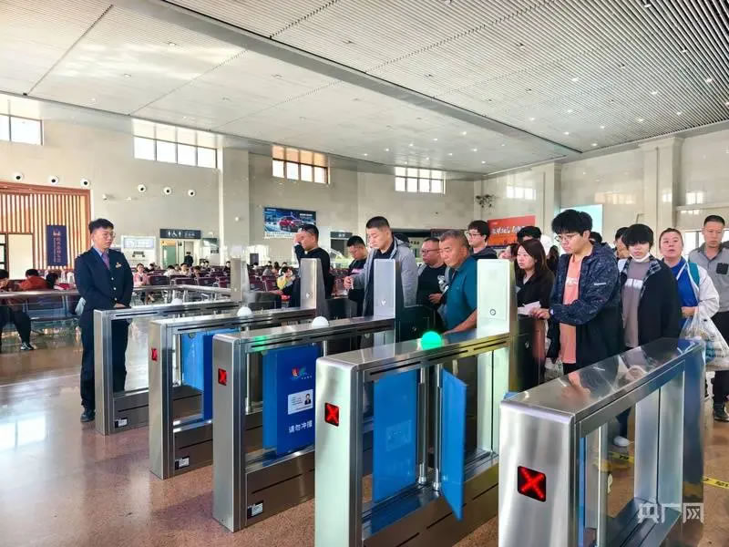 假日期間,奎屯站內(nèi)旅客正有序檢票乘車 (央廣網(wǎng)發(fā) 王雅琪 攝)