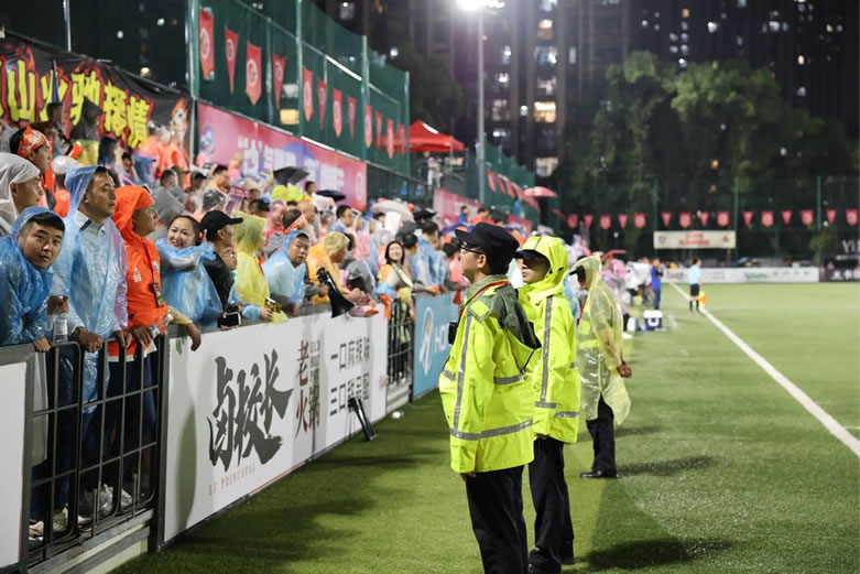 在此過(guò)程中,民警、輔警在嚴(yán)謹(jǐn)安保的同時(shí),還用心提供便民服務(wù)。期間,他們耐心幫助小球迷穿好雨衣、協(xié)助群眾尋找遺失物品、攙扶行動(dòng)不便者通過(guò)積水路段,用實(shí)際行動(dòng)為賽場(chǎng)增添溫暖。