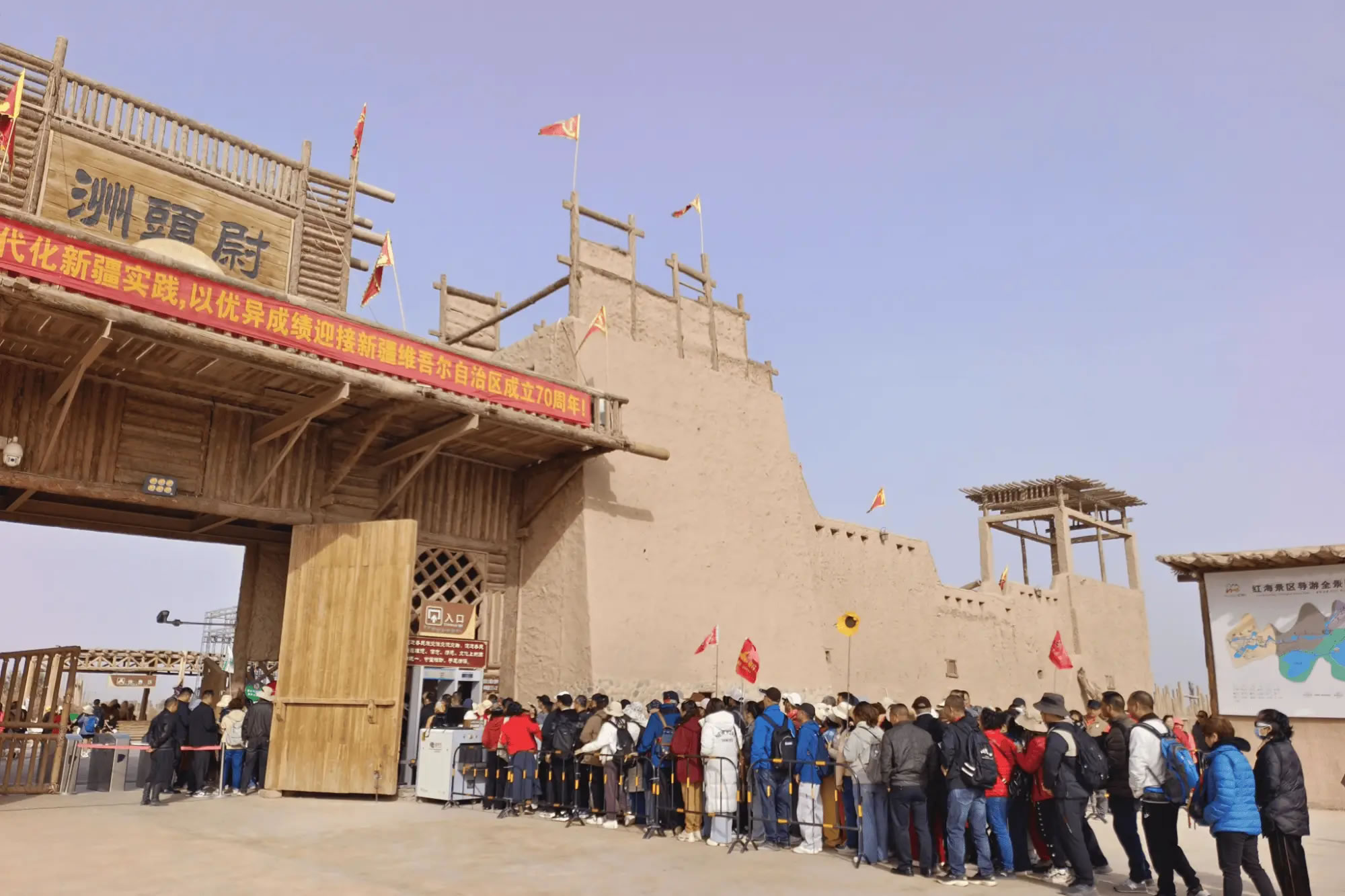 游客正在景區(qū)排隊 (熱孜萬古 攝)