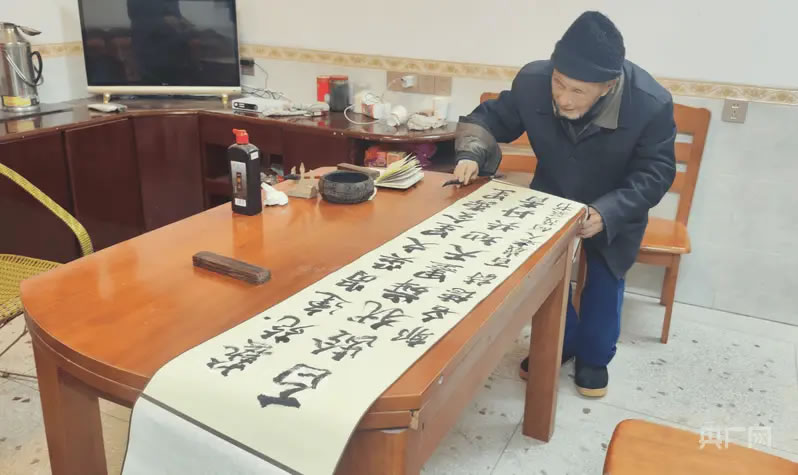 “百歲老人”何茂基揮毫潑墨(央廣網(wǎng)發(fā) 郭名德 攝)