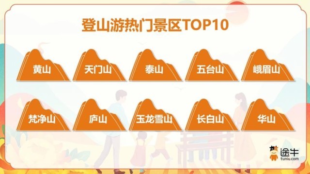 登山游熱門景區(qū)方面,黃山、天門山、泰山、五臺(tái)山、峨眉山、梵凈山、廬山、玉龍雪山、長白山、華山等憑借各自獨(dú)特的自然風(fēng)光與深厚的文化底蘊(yùn),成為途牛用戶更為熱門的選擇,位列“2025登山游熱門景區(qū)榜單”前列。